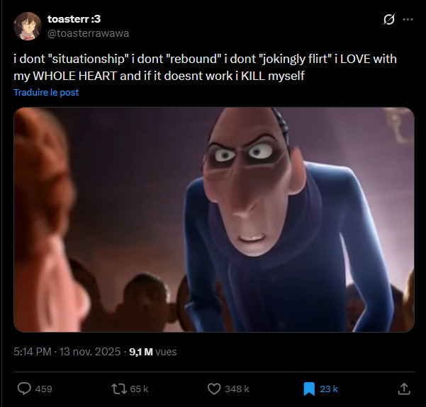 Bien entendu, nous pourrions évoquer de très nombreux autres facteurs mais si vous voulez saisir le cynisme de la génération Z concernant leur vie affective, cette épidémie de nonchalance est un point capital.